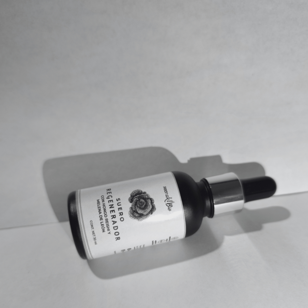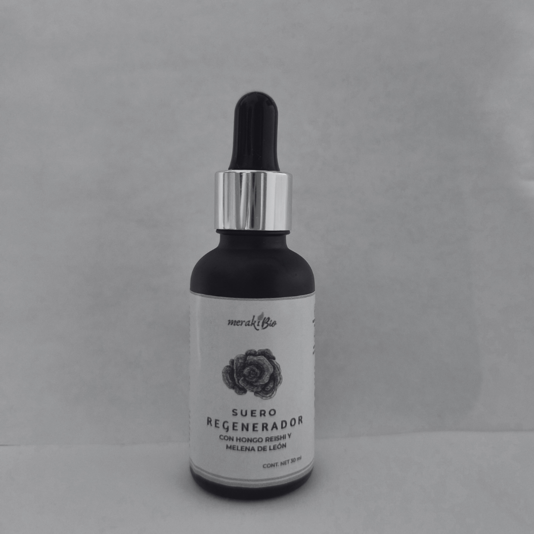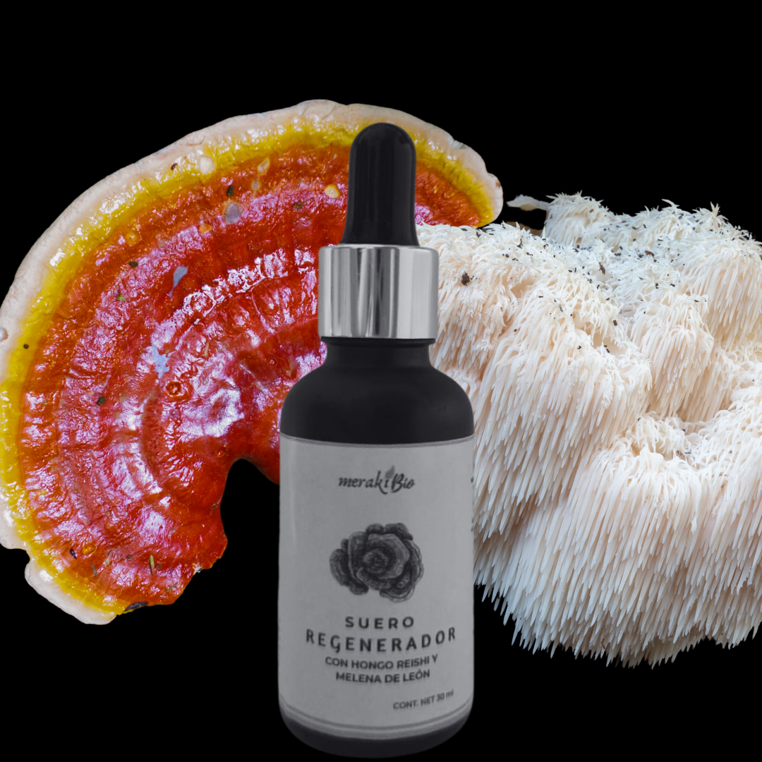 El primer Suero Regenerador a base de hongos, combina el extracto de hongo Reishi y Melena de león, dos ingredientes excepcionales que trabajan juntos para revitalizar, regenerar y proteger la piel de manera profunda.